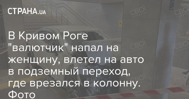У Кривому Розі "валютник" напав на жінку, влетів авто в підземний перехід, де врізався в колону. Фото