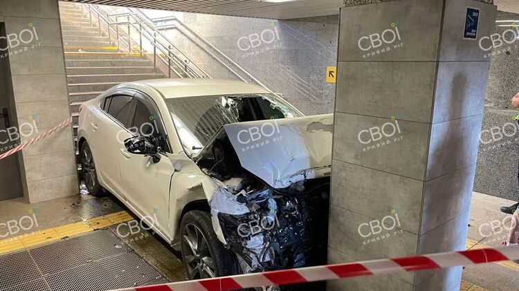 У Кривому Розі сталася незвичайна ДТП. Автомобіль Mazda врізався у колону у підземному переході.