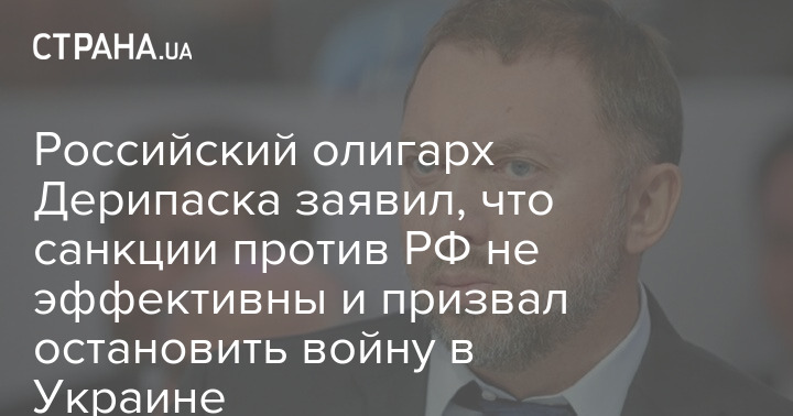 Російський олігарх Олег Дерипаска вважає, що санкції істотно не впливають на російську економіку і закликав зупинити війну в Україні з обох сторін.