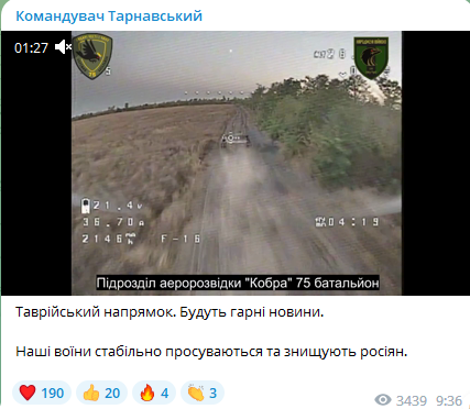 Командувач угрупуванням "Таврія" Олександр Тарнавський сьогодні вранці пообіцяв "хороші новини" Запорізьким напрямом.