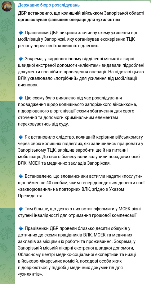 У Запорізькій області до схеми допомоги ухилистам включили Кардіологів. Фото - ГБР