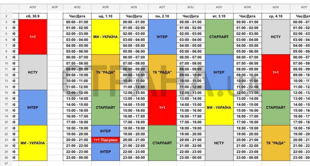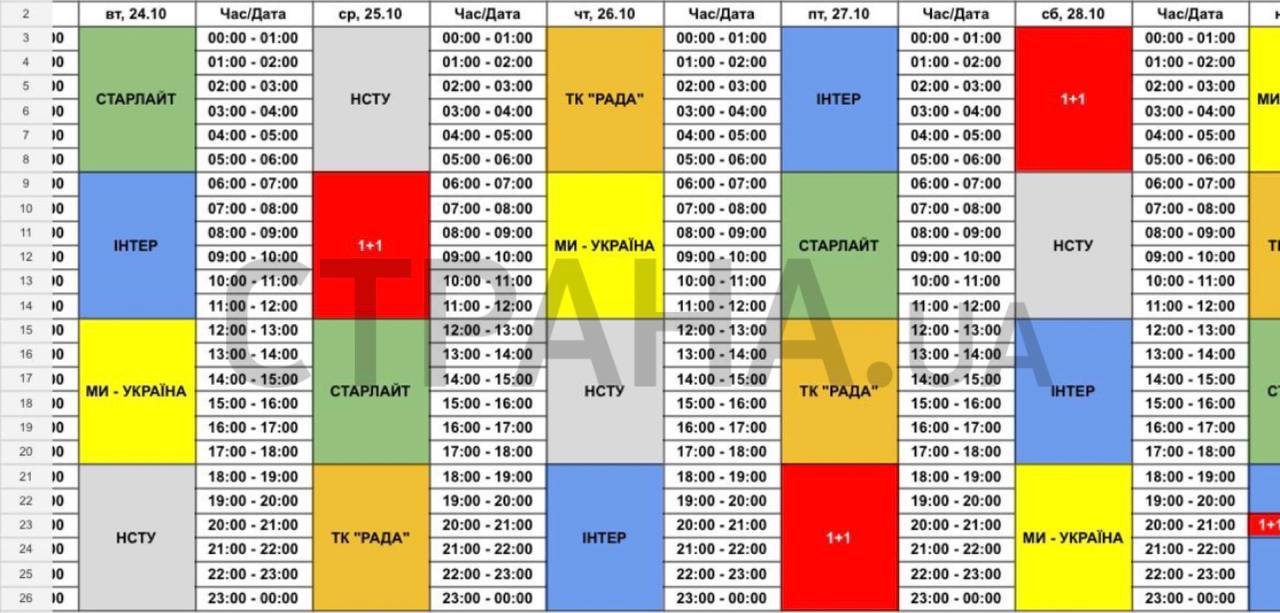 У розпорядженні "Країни" опинилися квоти каналів у рамках телемарафону на кінець вересня-початок жовтня. Згідно з таблицями, поки що скорочення ефіру у "1+1" немає.