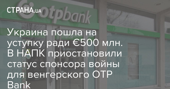 НАЗК оголосило про зупинення статусу міжнародного спонсора війни для угорського OTP Bank, чого неодноразово вимагав Будапешт.