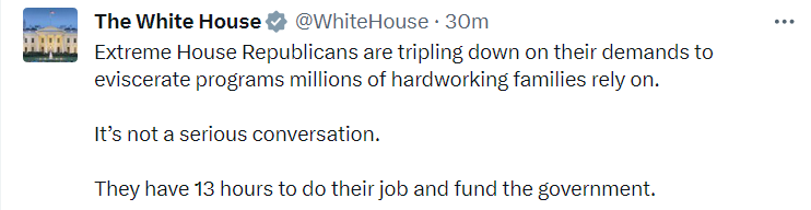 Повідомлення з часом до настання шатдауну опубліковано на сторінці Білого дому в соцмережі X (раніше Twitter).