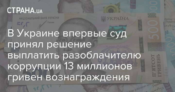 В Україні вперше суд ухвалив рішення виплатити викривачеві корупції 13 мільйонів гривень винагороди