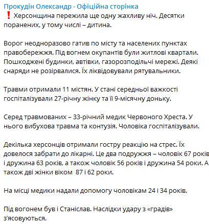 08.20 Херсонщина пережила ще одну жахливу ніч. Десятки поранених, зокрема – дитина.
