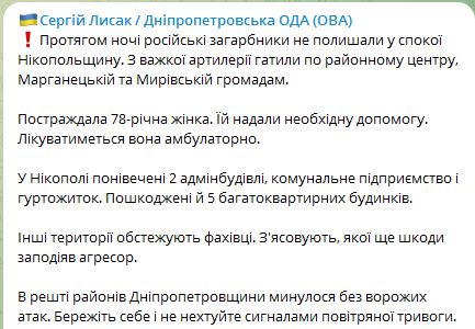 Вночі росіяни вдарили по Нікпопольщині, постраждала жінка