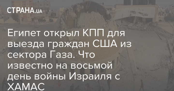 Єгипет відкрив КПП для виїзду громадян США із сектору Газа. Що відомо на восьмий день війни Ізраїлю з ХАМАС