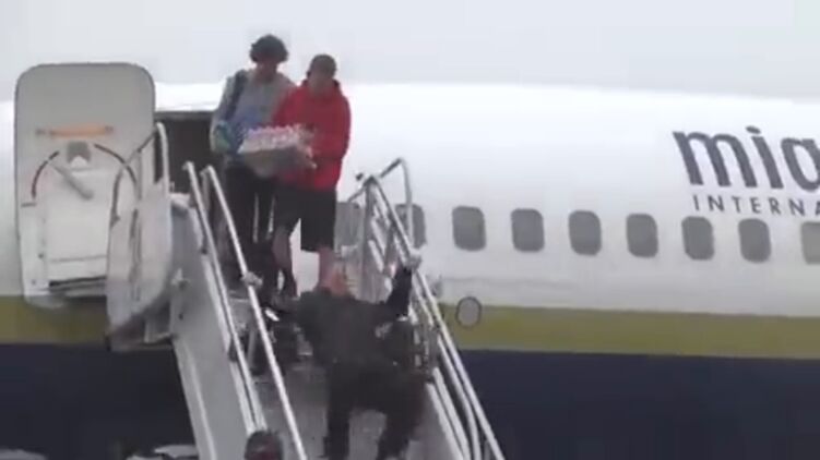 На кадрах можна помітити, що Тайбервілл не просто впав, а проїхався спиною по всіх сходах, поки його не "зловили" співробітники аеропорту, що чергували біля трапа.