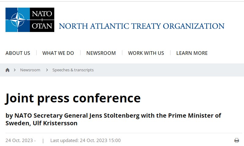 Про це заявив генсек НАТО Єнс Столтенберг у Стокгольмі під час прес-конференції з прем'єр-міністром Швеції Ульфом Крістерссоном.