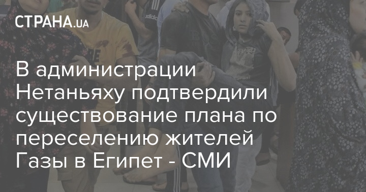 В адміністрації прем'єра Біньяміна Нетаньяху підтвердили агентству Associated Press існування у влади Ізраїлю плану переселення 2,3 млн жителів сектору Газа до Єгипту.