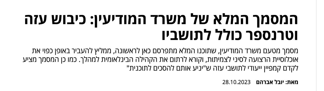 Раніше ізраїльське видання Mekomit опублікувало цей секретний план. Палестинці хочуть переселити на північний Сінай. Автентичність документа виданню підтвердив урядовець міністерства розвідки.