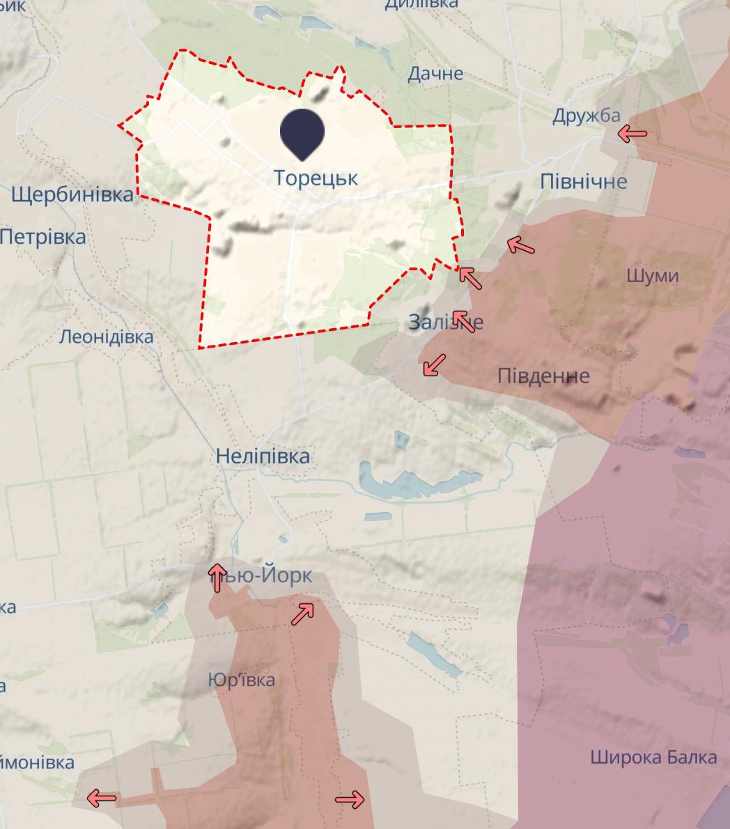 Раніше командування українських військ підтвердило, що росіяни вже прориваються на околиці Торецька.