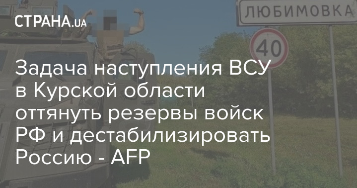 Завдання настання ЗСУ у Курській області - відтягнути резерви військ РФ та дестабілізувати Росію, заявив агентству AFP високопосадовець у структурах української безпеки.