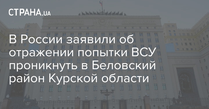 Міністерство оборони РФ заявило, що відбило "спробу прориву ЗСУ" до Біловського району Курської області.
