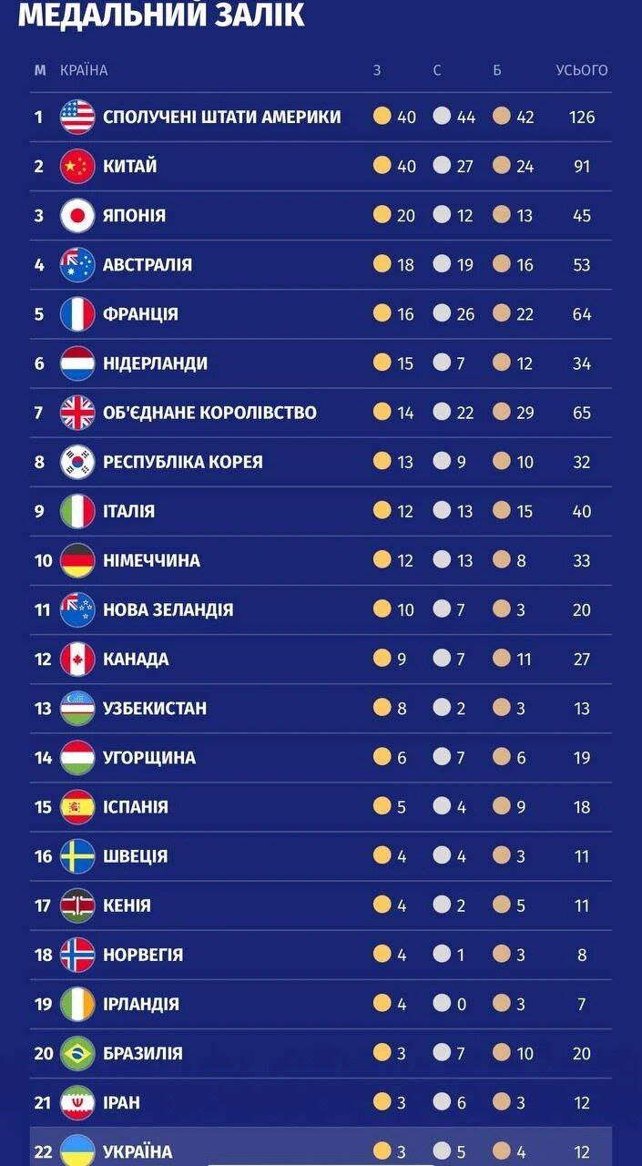 Як бачимо, США та Китай зрівнялися за золотими медалями.