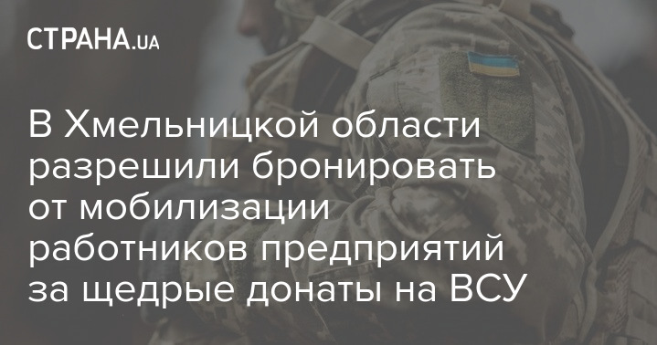 У Хмельницькій області броню від мобілізації отримають підприємства, які жертвують на ЗСУ понад 100 тисяч гривень.