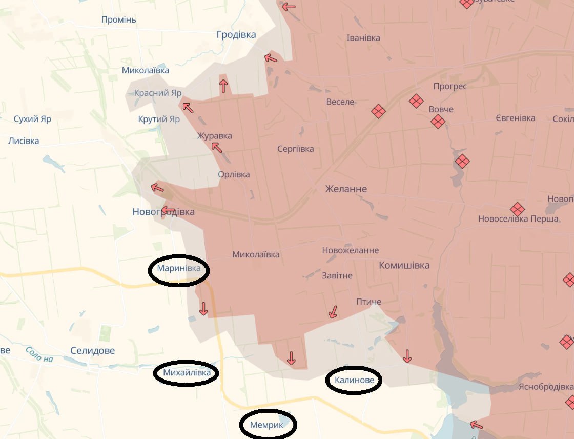 Якщо російським військам вдасться захопити також Маринівку та Михайлівку, це означатиме початок штурму Селидово.