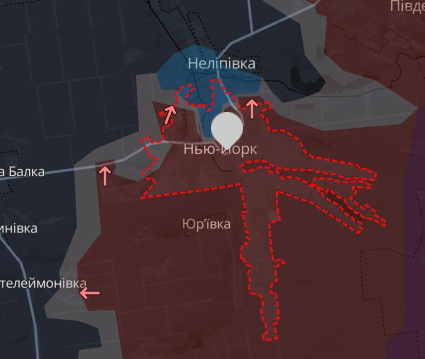 Частина російських військових пабліків підтверджує деблокаду фенольного заводу на півночі селища. При цьому інші публікують відео з контролем росіян у різних районах Нью-Йорка. Загалом, за даними Deep State, більшість селища контролюється Росією. ЗСУ відбили лише частину території на півночі.
