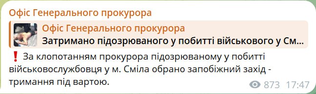 Після побиття військового у Смілі підозрюваного авторитету взяли під варту
