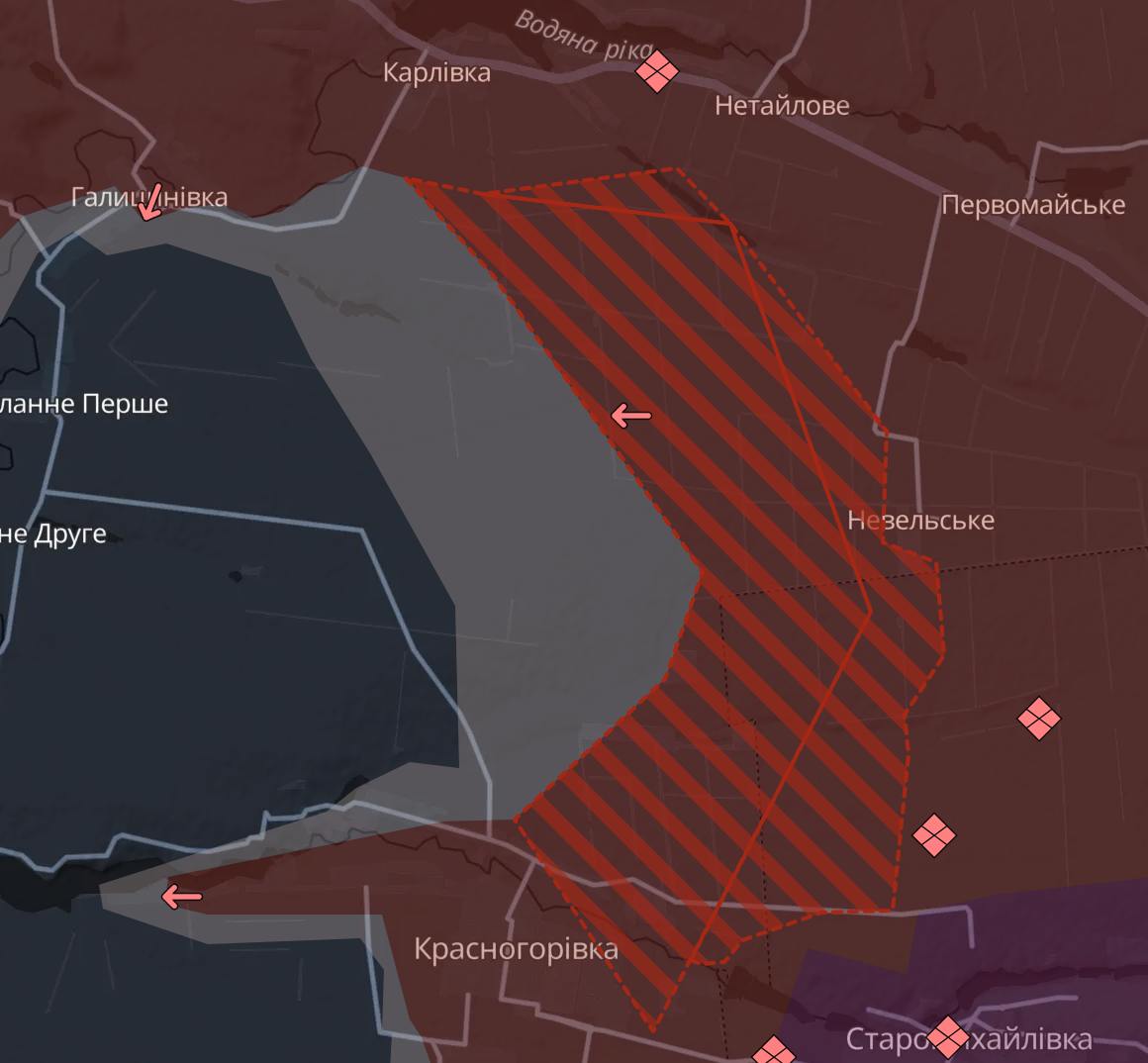Також Deep State фіксує новий поступ на захід від Новогродівки - приблизно півтора кілометри у бік Лисівки. Це вже напрямок прямо на Покровськ.
