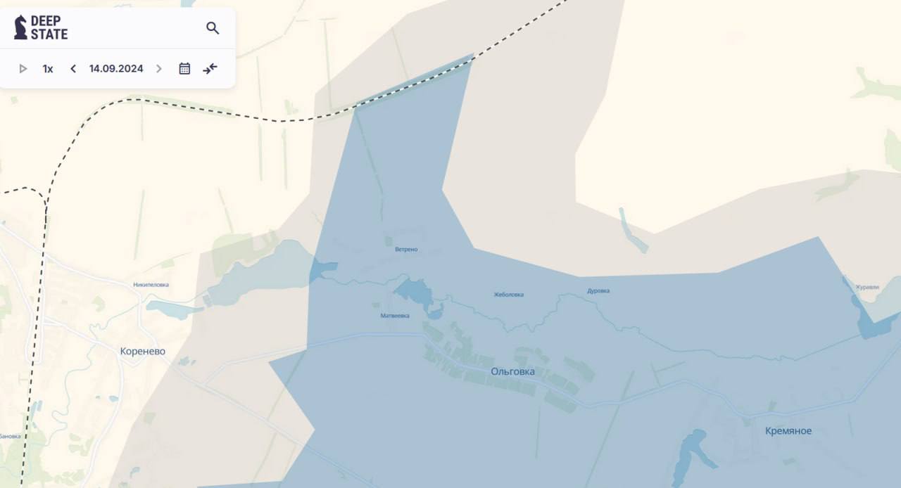 Про те саме пишуть і російські військові паблики. Вони повідомляють про бої за Любимівку, взяття якої створить загрозу оточенню українських військ на північному фланзі на схід від Коренево. За даними DeepState в цьому районі (на схід від Коренево) ЗСУ має просування. Паблік пише, що українські війська там зайняли населені пункти Вітрено, Дурівку та частину селища Журавлі.