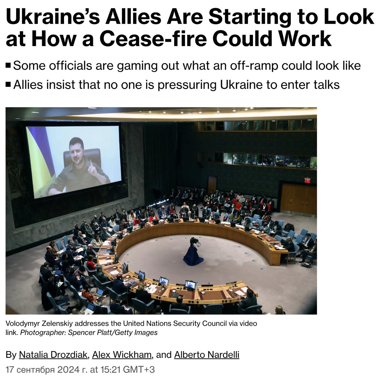 Останнє слово за Києвом на нього з такими закликами союзники не тиснуть, але обговорюють можливість "з'їзду з траси". Хоча і президент Володимир Зеленський, і Росія поки що готовності до цього не демонстрували.