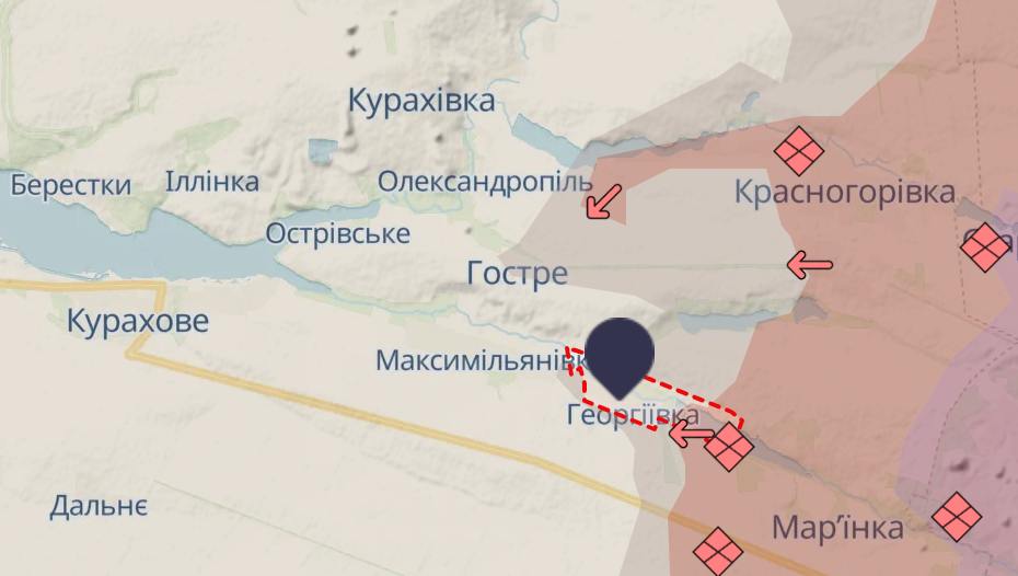 Міноборони РФ заявляє про захоплення Георгіївки на Курахівському напрямі.
