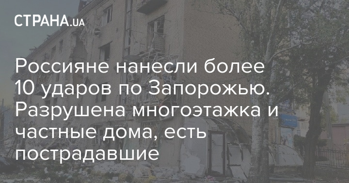 Росіяни завдали понад 10 ударів по Запоріжжю. Зруйновано багатоповерхівку та приватні будинки, є постраждалі