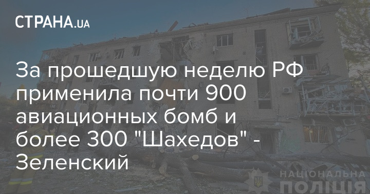 За минулий тиждень РФ застосувала майже 900 авіаційних бомб та понад 300 "Шахедів" - Зеленський