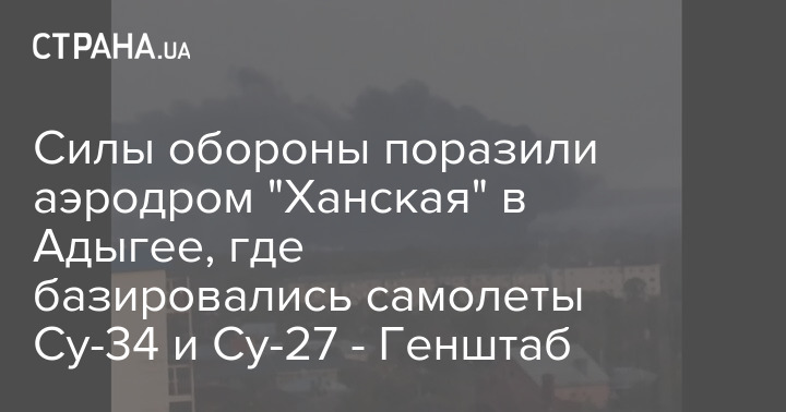 Сили оборони України вразили російський військовий аеродром "Ханська" в Адигеї, де базувалися літаки Су-34 та Су-27.