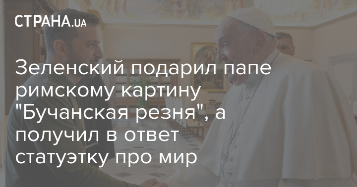 Зеленський подарував папі римському картину за мотивами різанини в Бучі, а у відповідь отримав "квітку світу".