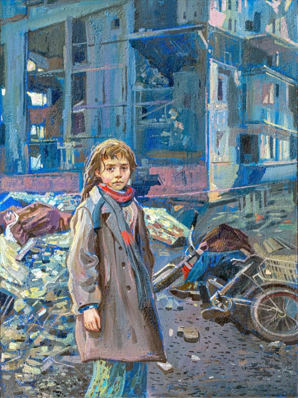 За задумом автора, на картині зображено дівчинку Марічку, на чиїх очах російські солдати катували та вбили її батька, матір та бабусю.