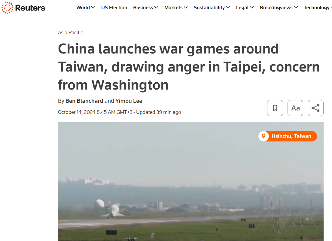 Китайські кораблі та літаки наближаються до острова "в безпосередній близькості з різних напрямків", приділяючи особливу увагу патрулюванню морської та повітряної боєготовності, атакам морських та наземних цілей та "спільному захопленню всеосяжної переваги", заявило командування КНР.