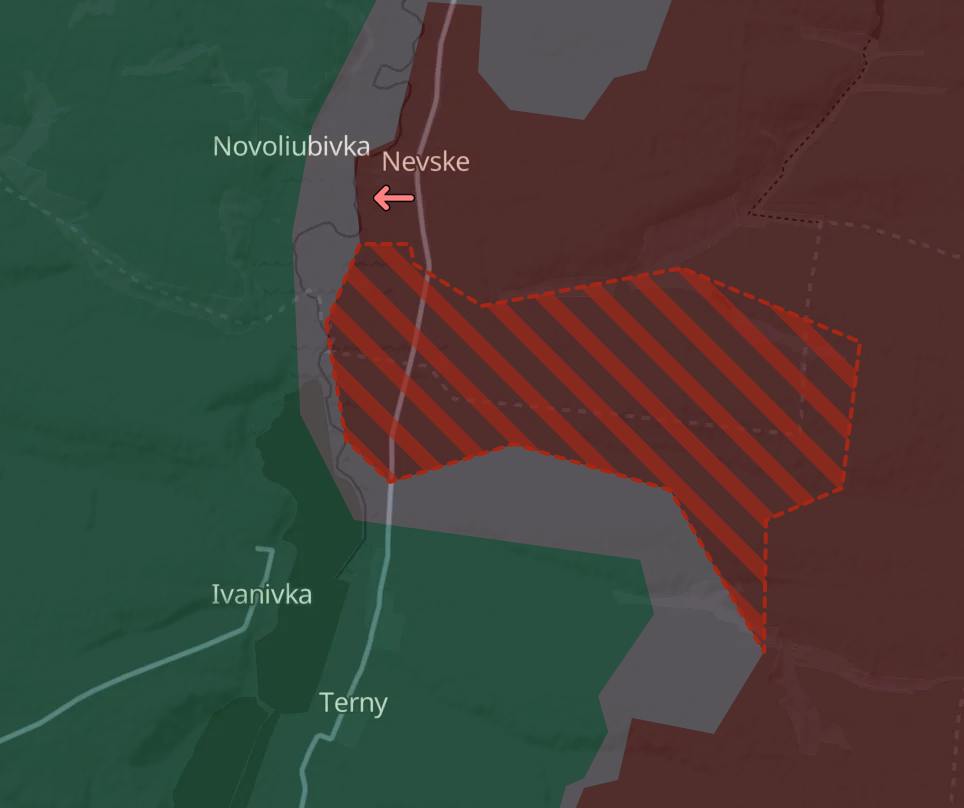 По-друге, паблік показав великі поступи РФ на захід від Цукуріно (в район Новодмитрівки), а також на схід від Курахового, де зменшилося вклинення ЗСУ у російські позиції (район Зоряного).