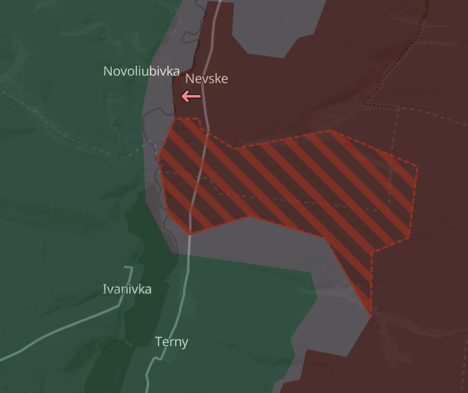 Крім того, DeepState показав великі поступи РФ на захід від Цукуріно (в район Новодмитрівки), а також в районі Гірника, де зменшилося вклинення ЗСУ в російські позиції (район Зоряного).