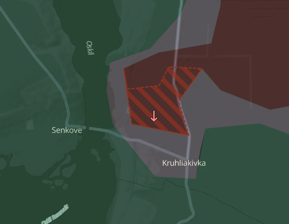 Під Куп'янськом DeepState заявив, що росіяни захопили більшу частину села Кругляківка на лівому березі річки Оскол. Таким чином, фактично розрізано угруповання українських військ на лівобережжі Оскола.