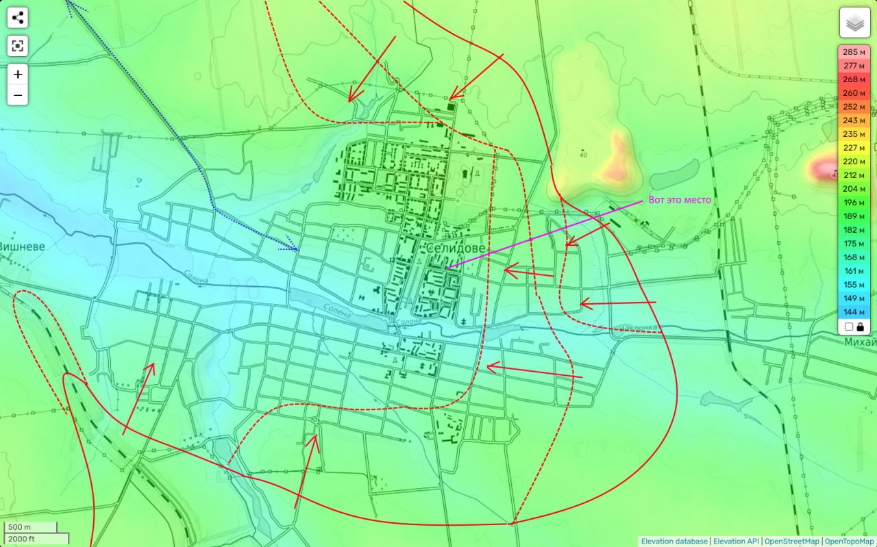 Також раніше військові заявляли, що росіяни вже вийшли на околиці Вишневого на захід від Селідова, що на карті Deep State поки що не відображено. Такий вихід загрожує оточенням міста, оскільки з Вишневого траса Селидово-Покровськ, яким постачається гарнізон ЗСУ, знаходиться вже в зоні прямої видимості.