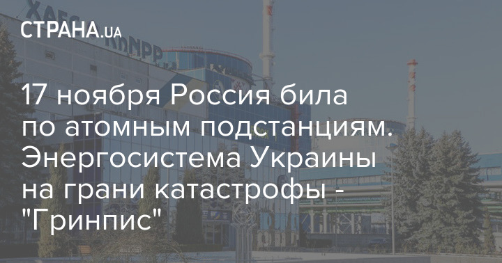 17 листопада Росія била по атомних підстанціях. Енергосистема України на межі катастрофи - "Грінпіс"