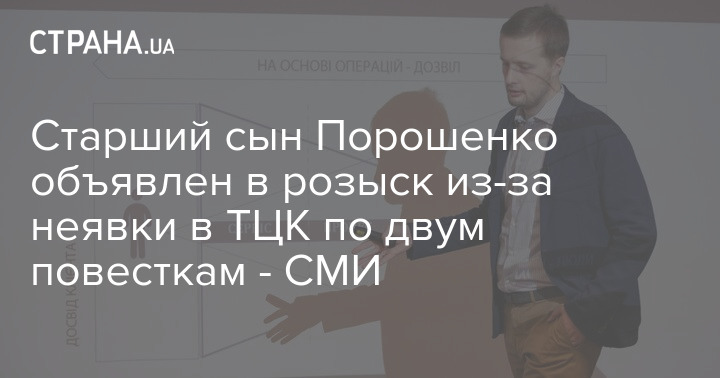 Сина колишнього президента України Петра Порошенка та народного депутата України VIII скликання Олексія Порошенка оголошено в розшук через неявку за повістками в ТЦК.
