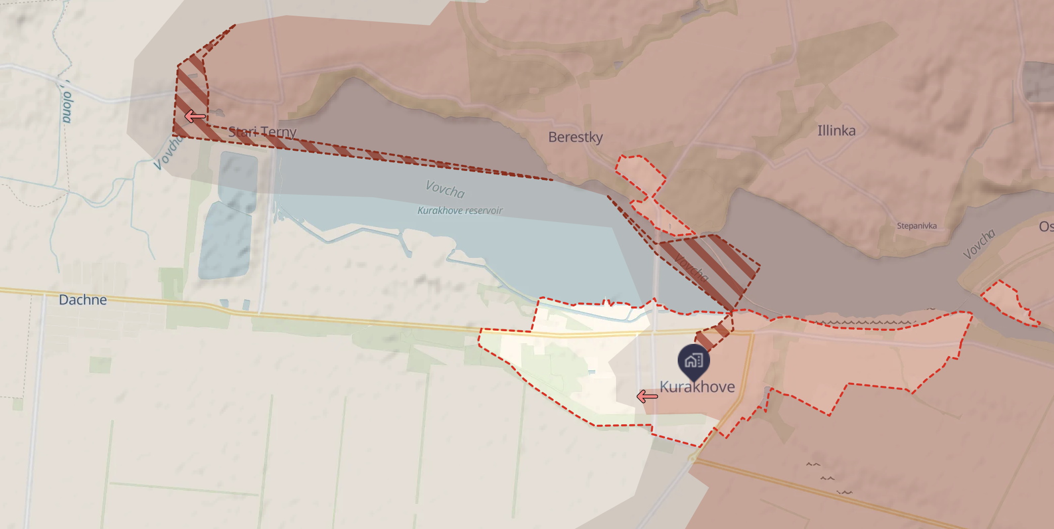 На південь від Покровська росіяни підійшли впритул до села Новотроїцьке, захопивши дорогою село Новопустинка. Таким чином зміцнюються позиції РФ у села Шевченка, що має важливе значення, за три кілометри від Покровська, куди росіяни прорвалися напередодні.