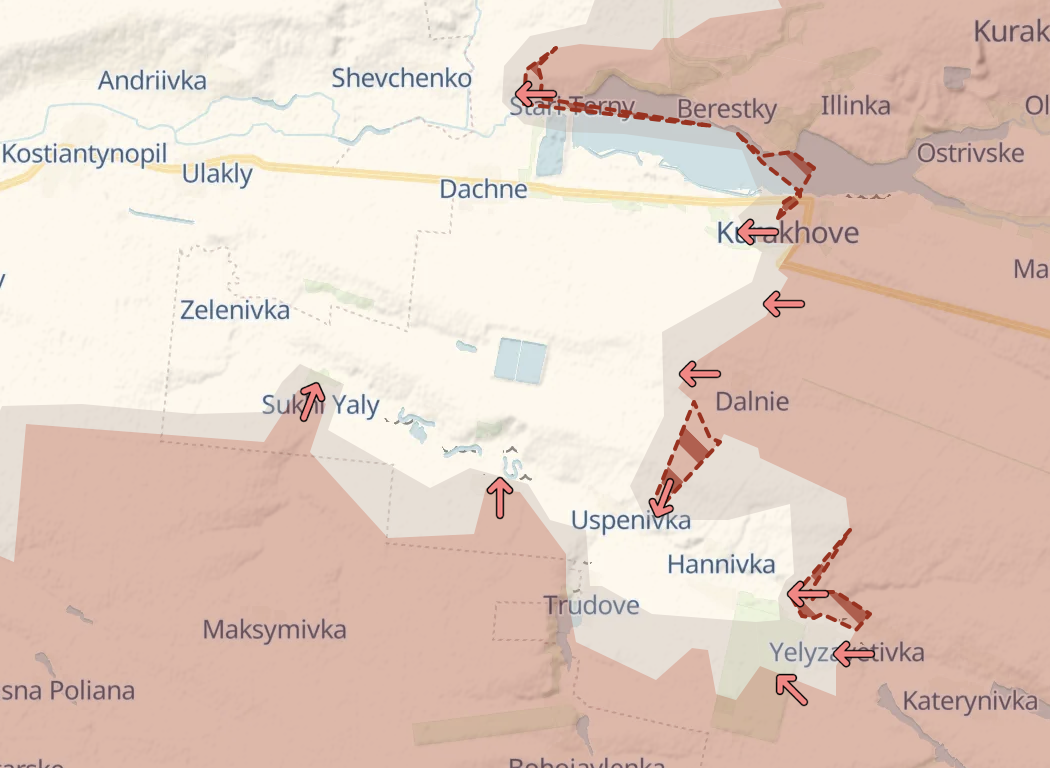 У "кишені" на південь від Курахового росіяни прорвалися до села Успенівка. Це може призвести до утворення міні-котла, куди потраплять села Трудове, Ганнівка, Веселий Гай, Романівка та Єлизаветівка.