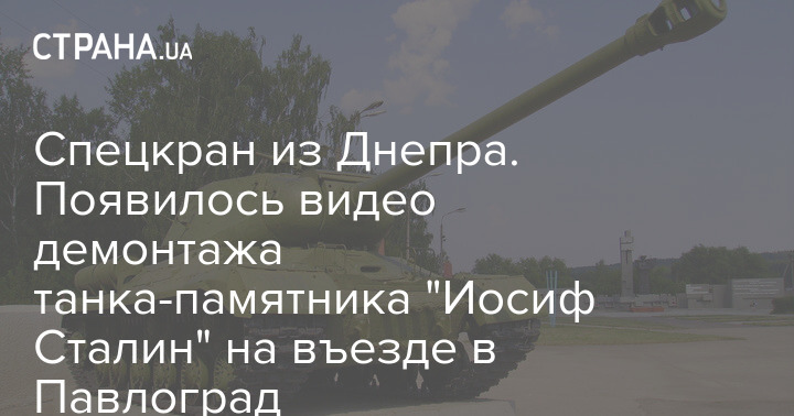 Спецкран із Дніпра. З'явилося відео демонтажу танка-пам'ятника "Йосип Сталін" на в'їзді до Павлограда