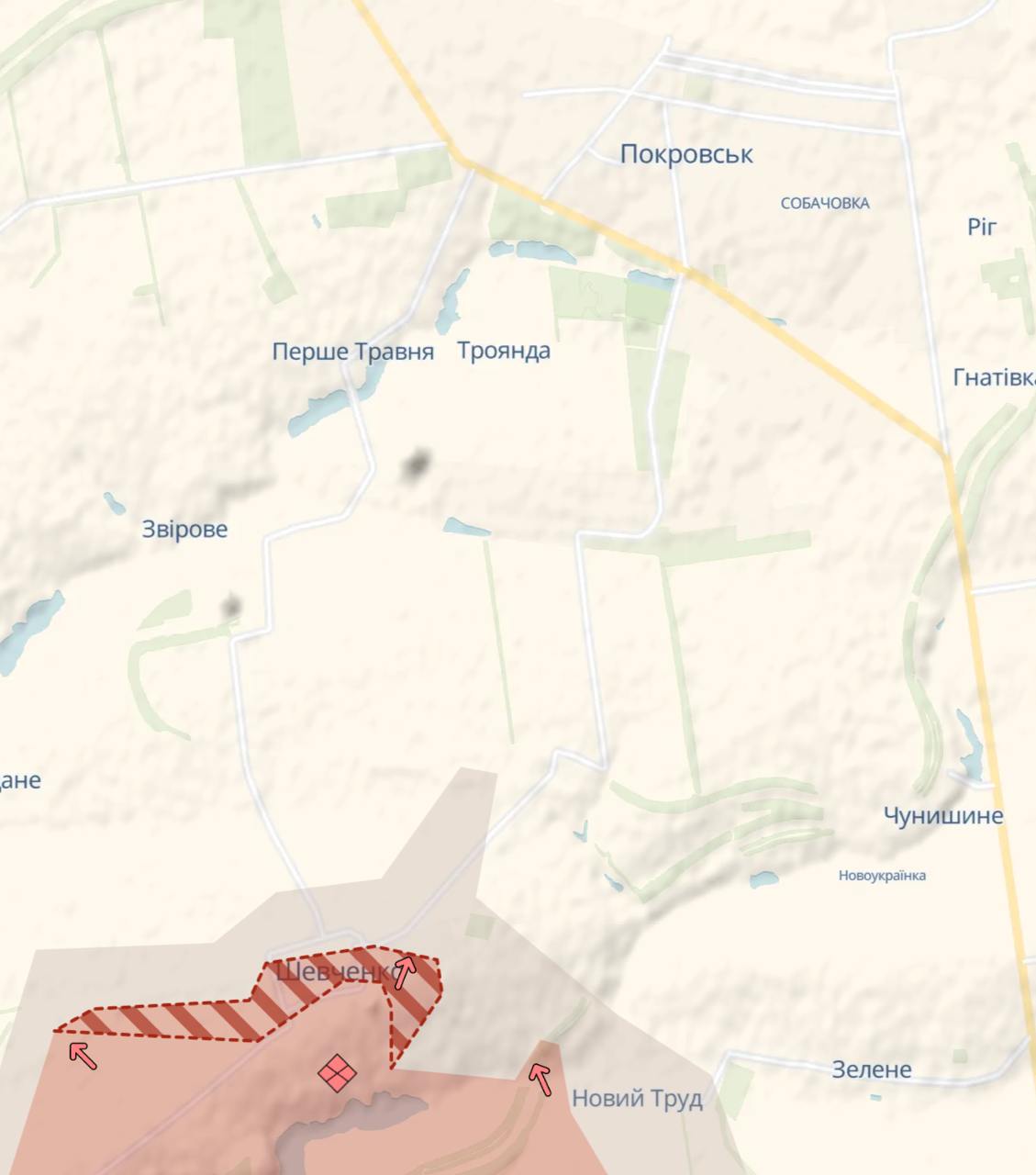 11.58 Армія РФ просунулась у Курахово та Шевченка, що на південь від Покровська, свідчить карта Deep State.