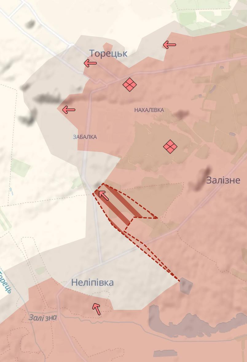 Також у росіян є просування на південь від Торецька, де фронт давно не рухався.