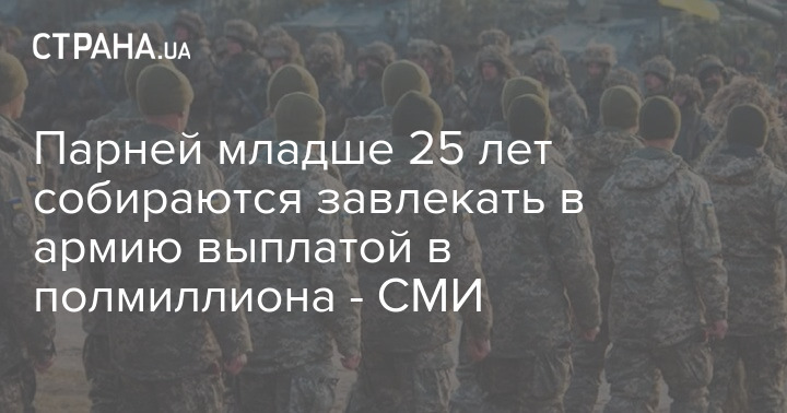 Хлопців молодших 25 років хочуть залучати до армії стартовою виплатою у півмільйона гривень, безкоштовною вищою освітою, пільговими кредитами, бойовими виплатами та іншими бонусами.