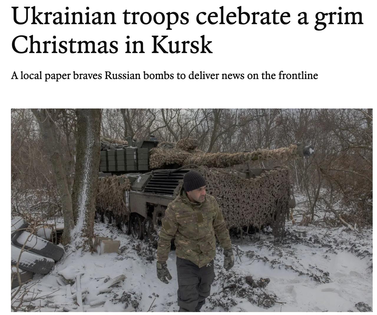 9.00 Українські війська "святкують похмуре Різдво" у Курській області, пише британський журнал The Economist.