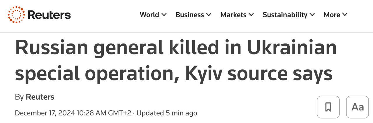 10:44 Російського генерала Кириллова в Москві ліквідувала СБУ, повідомляє Reuters з посиланням на джерело у відомстві.