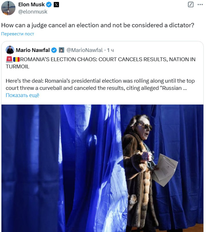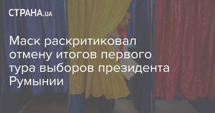 Бізнесмен Ілон Маск розкритикував скасування підсумків першого туру президентських виборів у Румунії.