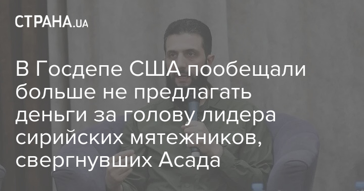 У Держдепі США пообіцяли більше не пропонувати гроші за голову лідера сирійських бунтівників, які повалили Асада
